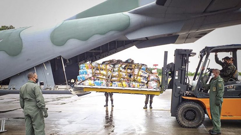 4. A aldeia Yanomami/AM recebeu uma tonelada de alimentos nesta terça-feira (5). O transporte foi realizado pela aeronave C-105 Amazonas da @fab_oficial em uma ação de apoio à Federação das Organizações Indígenas do Rio Negro e ao Instituto Socioambiental.