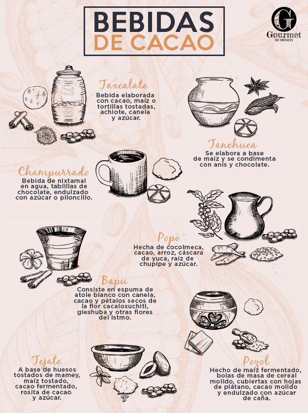 Esta increíble infografía fue realizada por @gourmetdemexico, las explicaciones de cada tipo de bebida fueron descritas por @festivalcacao, no olviden seguirlos en su Facebook si quieren saber más de este increíble ingrediente mexicano.