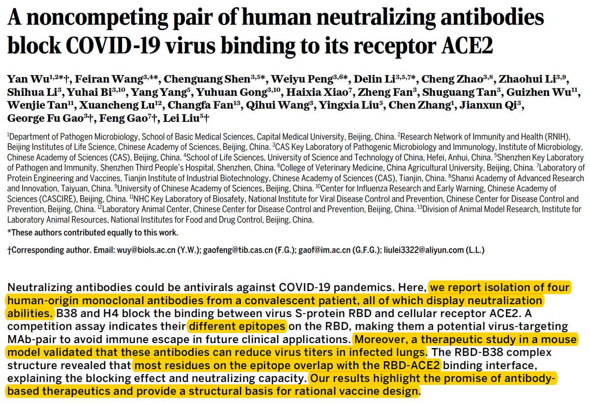 Now, @ScienceMagazine, neutralizing monoclonal Abs from 4 patients takes this further w/ different epitopes + mouse model impact