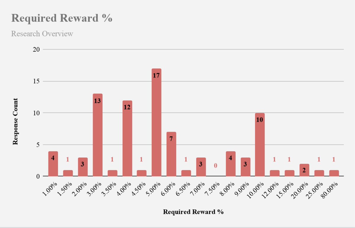 Staking rewards are an important part of the #Eth2 incentive model. Those who plan to run their own validators expect avg. 5.8% rewards. Those who plan to use a 3rd party expect avg. 7.6%. Those who are undecided would need avg. 9.4% to convince them to stake.