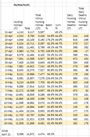 From April 21 to May 14: 2,279 nursing home 1,242 all other; 64.7%.