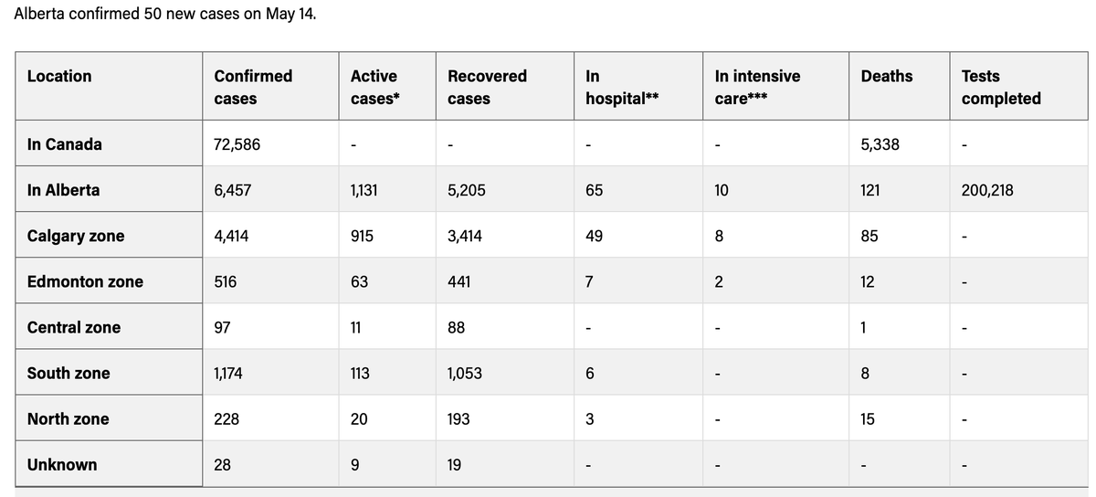 In case you needed a refresher, here is the data from yesterday's update. Calgary remains a hot zone, with over 800 cases in the city alone out of over 1,100 province-wide.