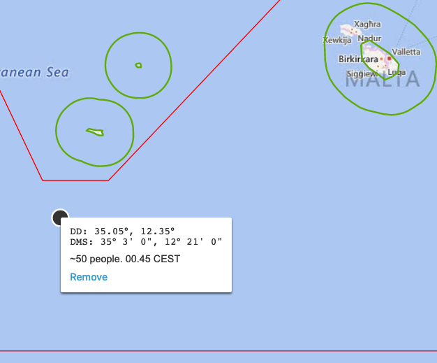 *CORRECTION*: The people in distress reached out again & shared a corrected GPS position: 35d03m, 12d21m (00.45 CEST), which would then show them in #Malta SAR zone. All authorities should search for the boat to rescue & bring the people in distress to a place of safety!