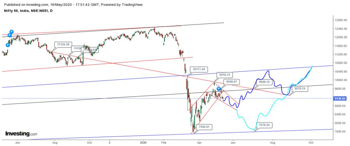 4. The chart shared is of NIFTY50 Index on Weekly timeframe, you may see there are actually 2 major channels in place (1) Blue Lines major channel 1 (2) Black Line major channel 2.