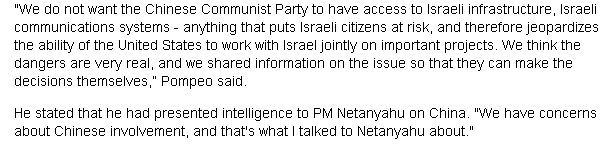 Pompeo brought intel to Netanyahu on China's involvement in their infrastructure earlier this past week ... see next tweet.