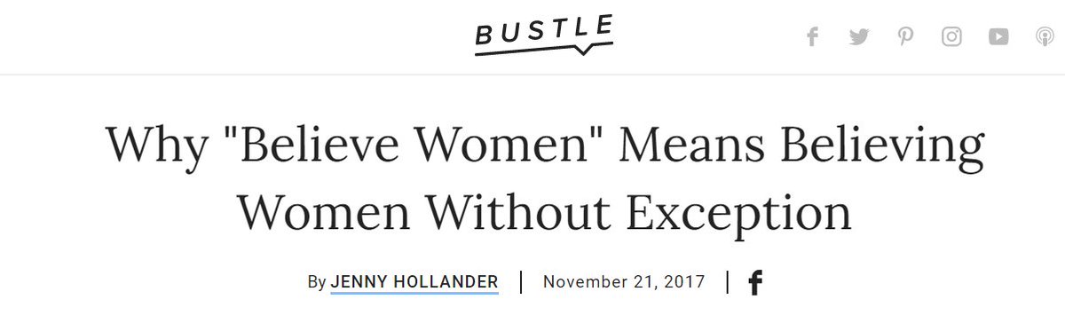 Bustle, 2017: "Why 'Believe Women' Means Believing Women Without Exception"