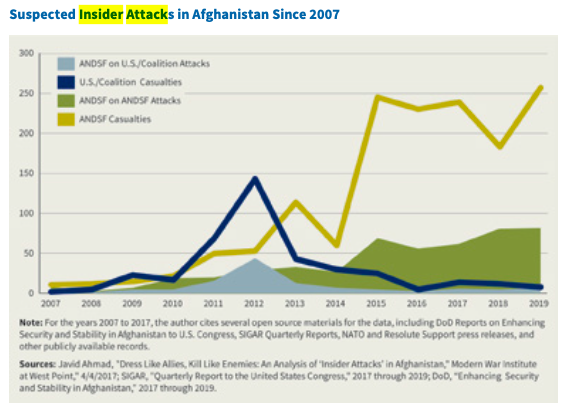 2019 was the deadliest year for insider attacks, per @DoD_IG with 172 Afghan troops killed, and another 85 wounded