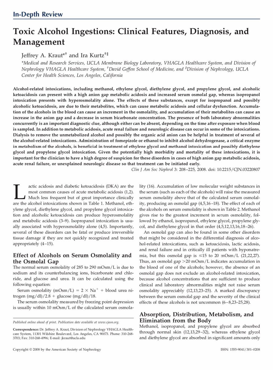 Toxic Alcohol Ingestions: Clinical Features, Diagnosis, and Management ca. 2008 from @CJASN #Nephpearls