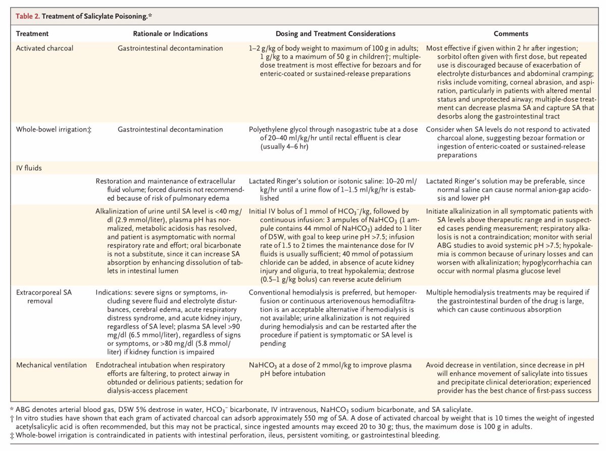 Salicylate toxicity: Treatment ca. 2020 from @NEJM #Nephpearls