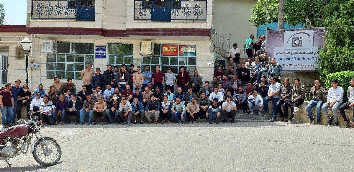 Workers and employees of the Ali-Sadr Cave gathered today to protest being kept in a state of limbo and not receiving unemployment insurance despite the closure of the popular tourist destination due to #COVID19. #IranProtests