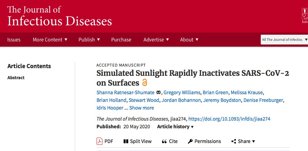 "90% of infectious virus was inactivated every 6.8 minutes in simulated saliva & every 14.3 minutes in culture media when exposed to simulated sunlight"