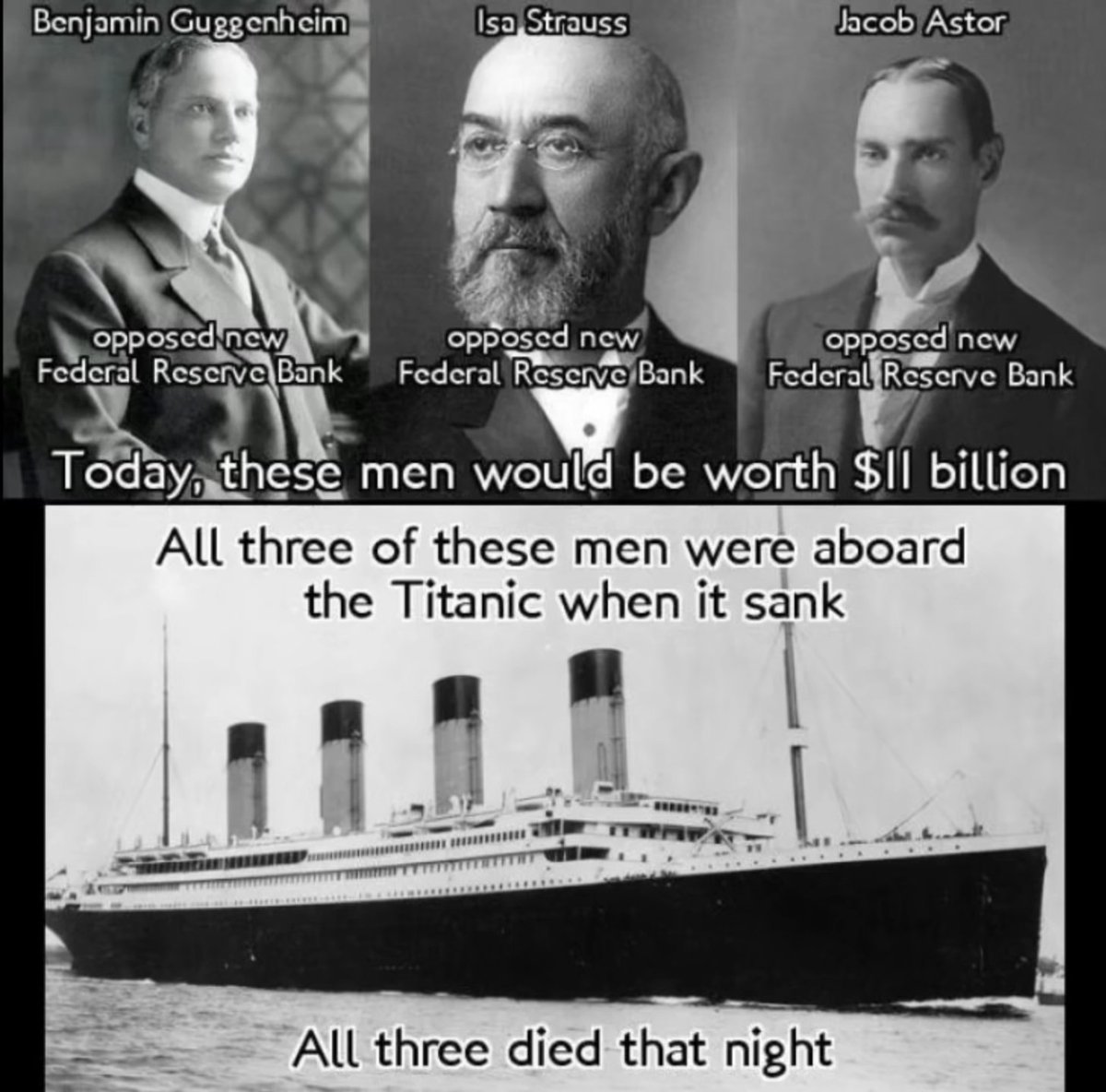 Um ano após o naufrágio, em 1913, a Federal Reserve foi criada com o propósito de segurança ao sistema bancário.