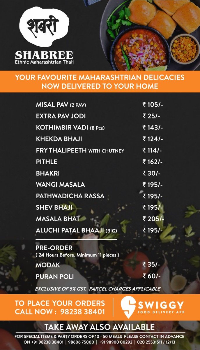 I am happy to share that #Shabree is restarting operations, not yet as a dine-in Restaurant, but serving you via Take Away and Home Delivery orders. You can now order your favourite Maharashtrian delicacies, the ones you and your family have craved for over two months!