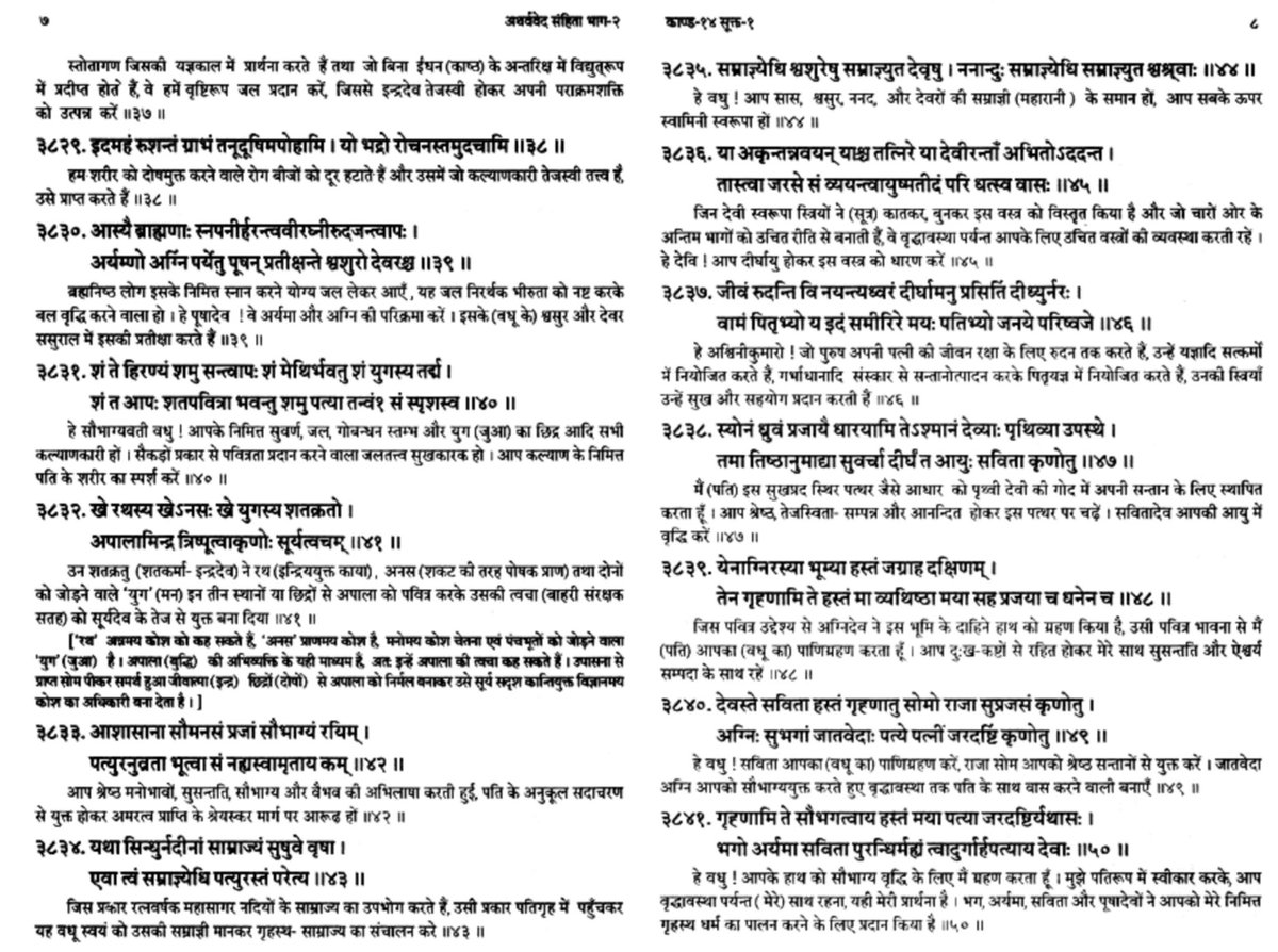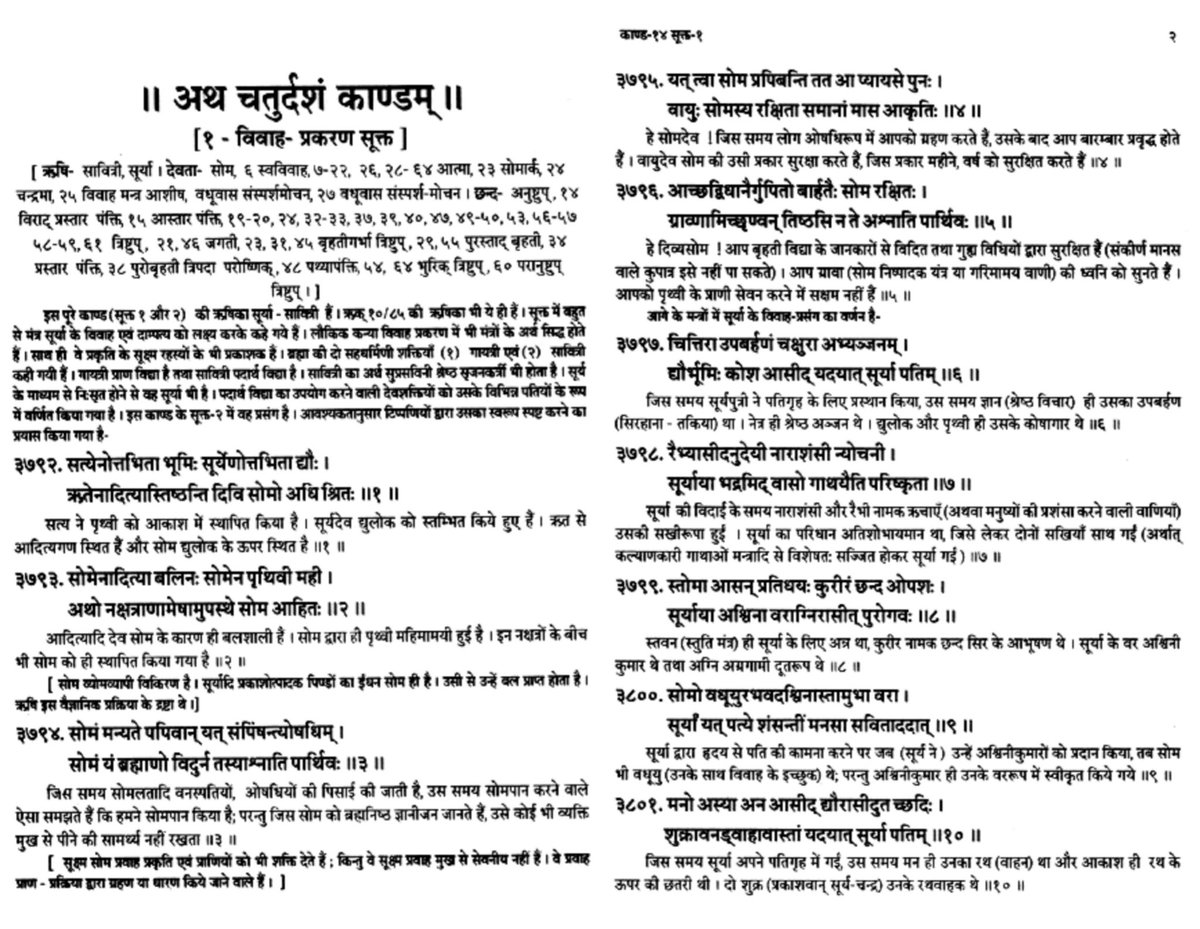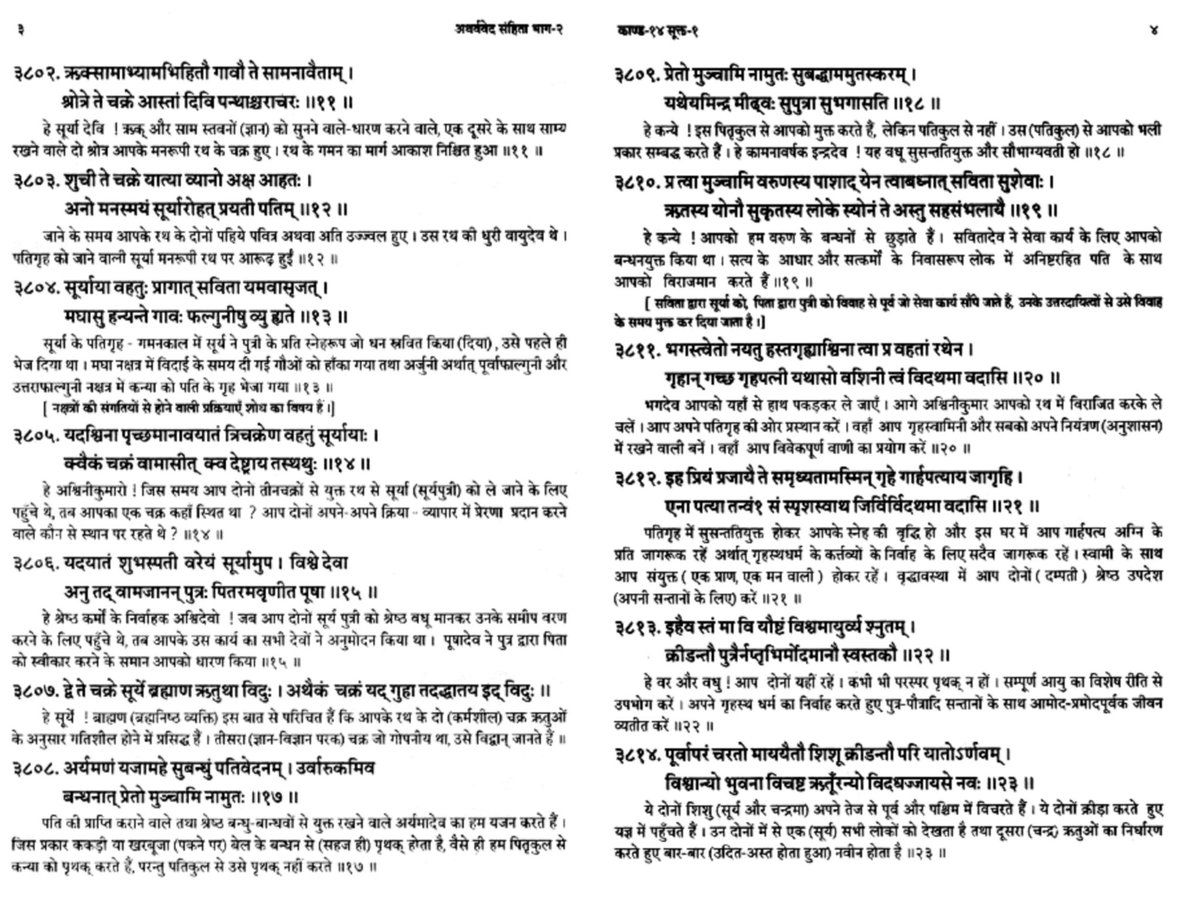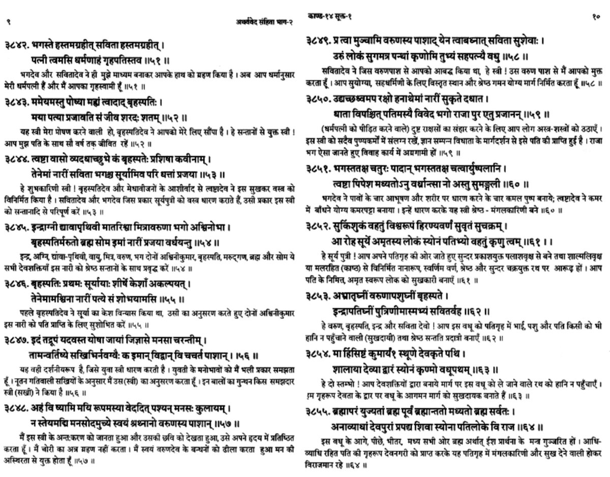 Again the concept of ‘slave girls’ existed in Saudi Arabia, Biblical times, and in their wandering mind. Atharva Veda 14.1 has 64 hymns. They talk about the marriage ceremonies in general. However, in none of the 64 hymns do we find such irresponsible statements.