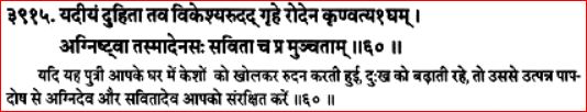 Atharva Veda 14.2.60 says: “If in your house your daughter has wept with disheveled locks, then you are committing sin as a result of her grief.”