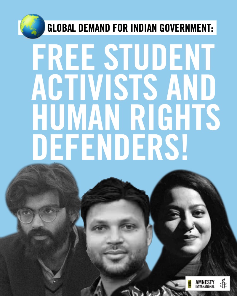 2: Safoora Zargar, Meeran Haider, Shifa-Ur-Rehman & Sharjeel Imam are all detained under the #UAPA. We believe their detention is unfounded & designed to punish them for defending human rights & engaging in peaceful protest against a discriminatory law.