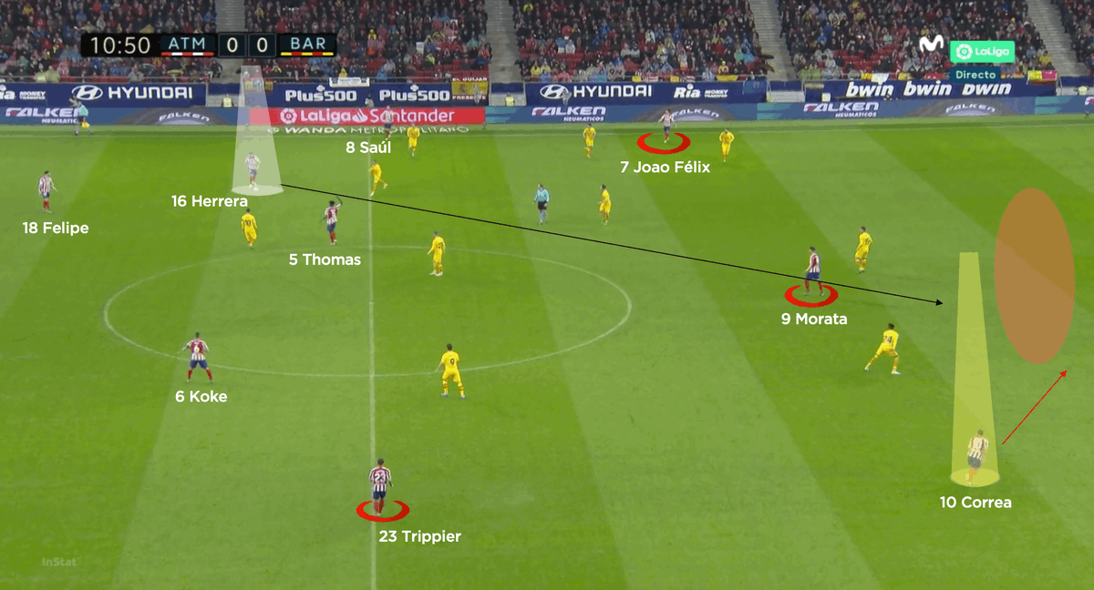 Ángel Correa’s understanding of how to use movements to lose his markers contributes to making Simeone valuing him to the extent he does. He is consistently ready to make diagonal runs from a wider position to a more central one, often to attack a rival’s blind side #Atleti