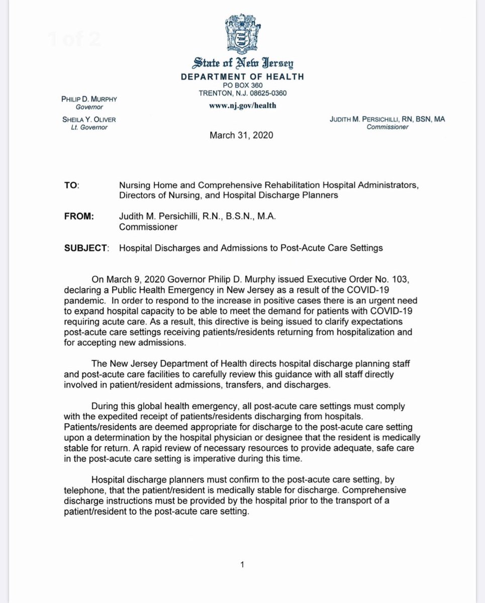 WHY WOULD [4] [D] GOVS PUSH COVID-19 [COV-2] INFECTED PATIENTS INTO [SAFE] NURSING HOMES?