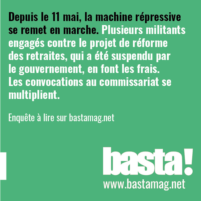 Si la réforme des retraites a été suspendue, ce n’est pas le cas des poursuites engagées à l’encontre de militants suite à des actions de blocages. Depuis la fin du confinement, les convocations au commissariat se multiplient. Par @Sophie_Chapellebastamag.net/reforme-retrai…