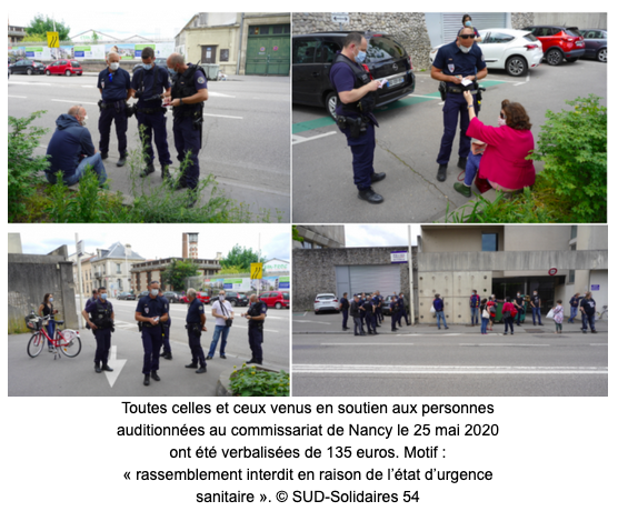 Toutes les personnes venues en soutien devant le commissariat à Nancy ont été verbalisées. «C'est une guerre sociale contre toute forme de contestation. Comment expliquer qu’on ait plus de droits dans un supermarché que lorsqu’on soutient des camarades victimes de répression ?»