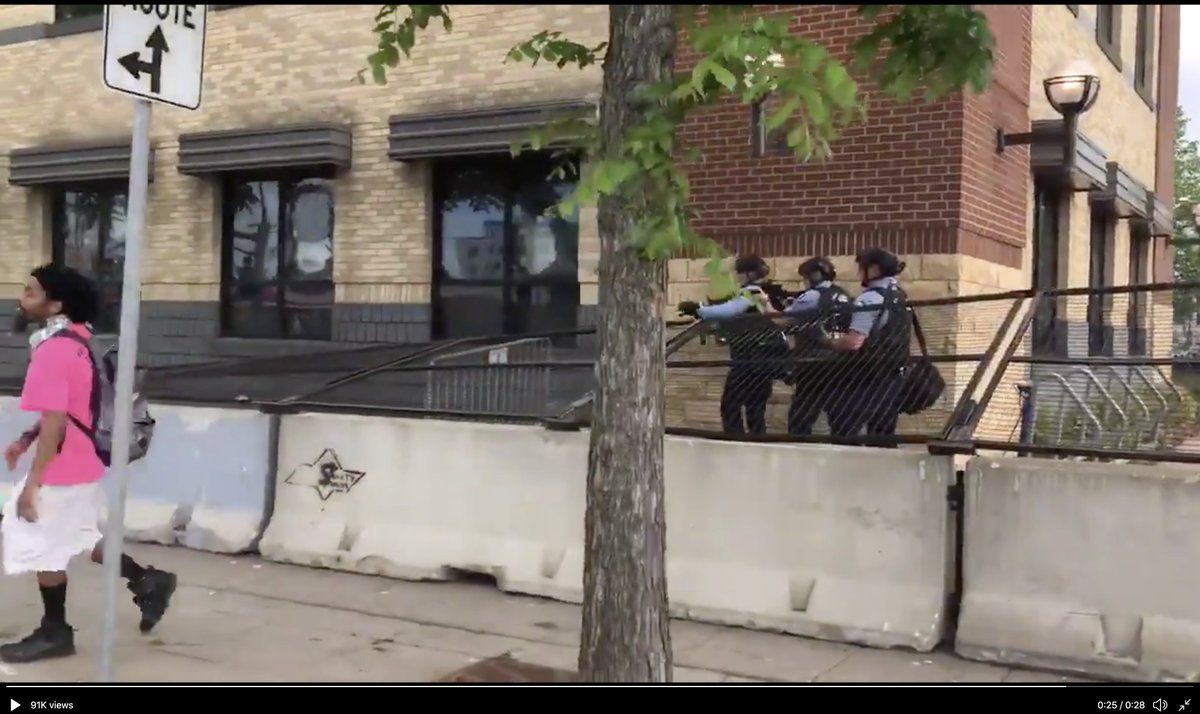 Shows both Umbrella smasher + pink shirt guy walking off towards Target.