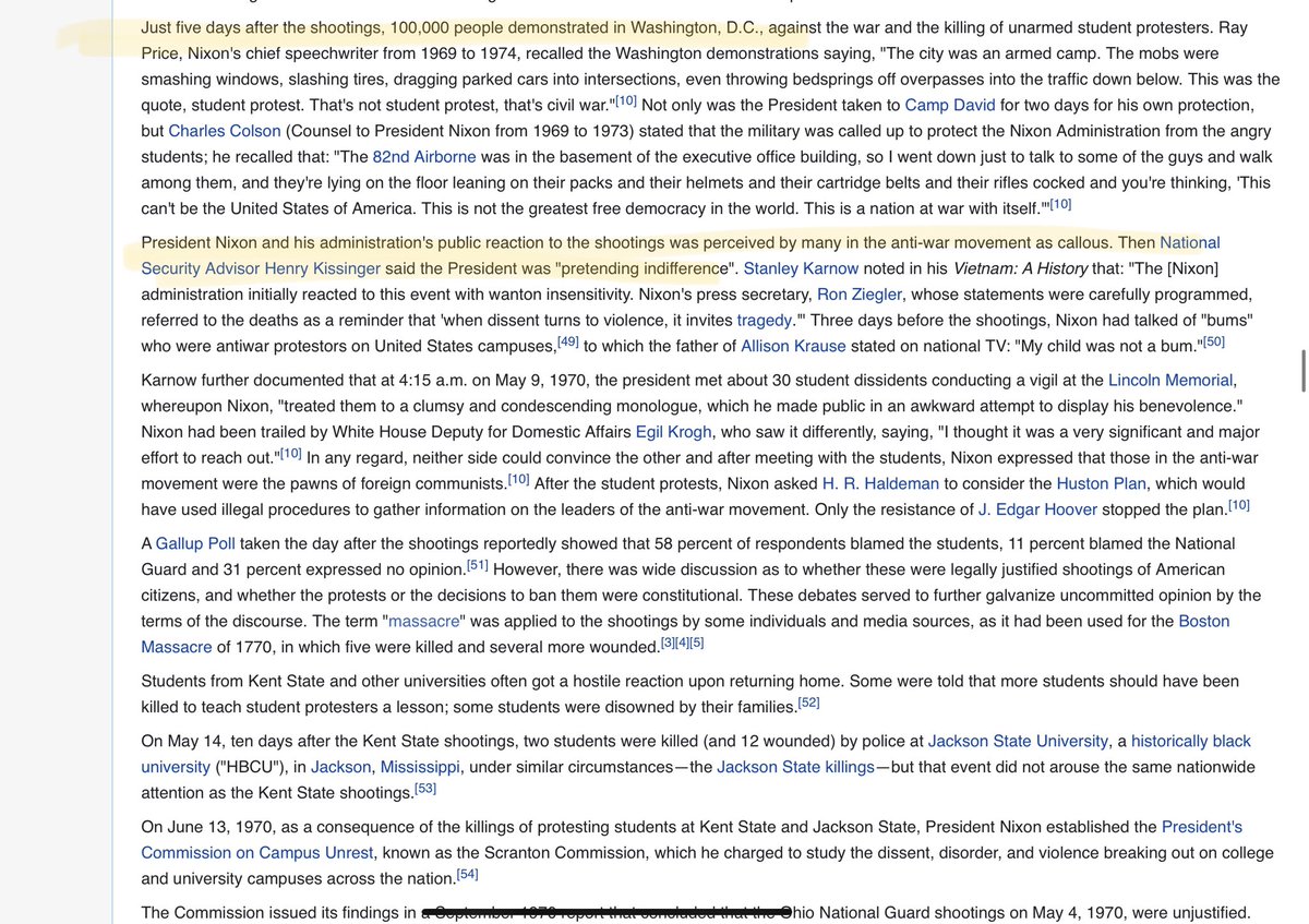 sets up bad situation––a group of innocent college-aged people killed by state/national guard––