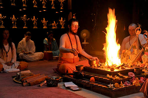 Yajna (यज्ञ) is the holy offering to pray and please various deities which uses fire as the medium. Fire is one of the elements our body is composed of, so Yagya acts as a link between humans and God.