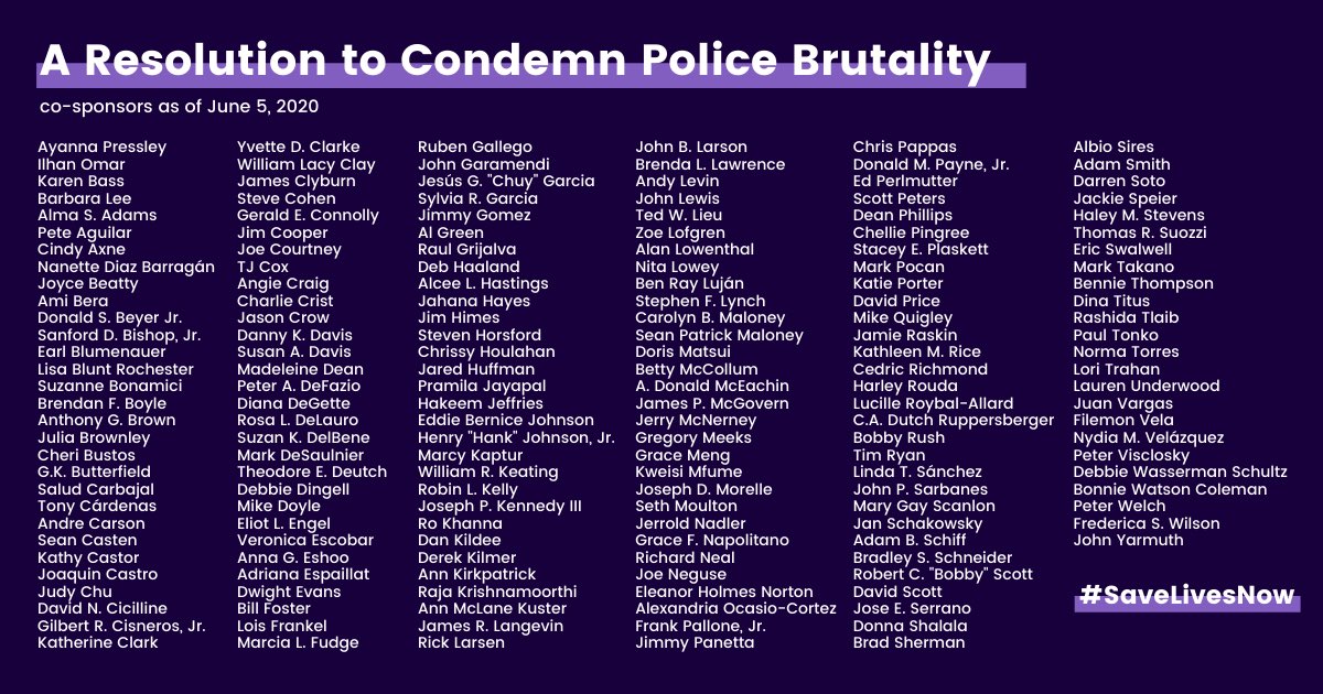 UPDATE thanks to your advocacy our Resolution Condemning Police Brutality has over 135 co sponsors as of today