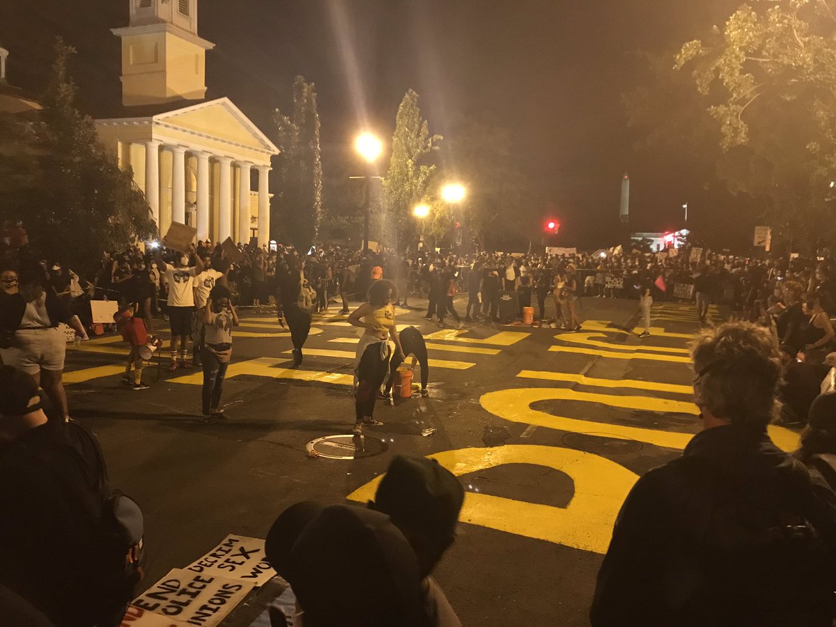 UPDATE: It’s 8:38p. A large group has gathered at Lafayette Square, directly north of the White House.