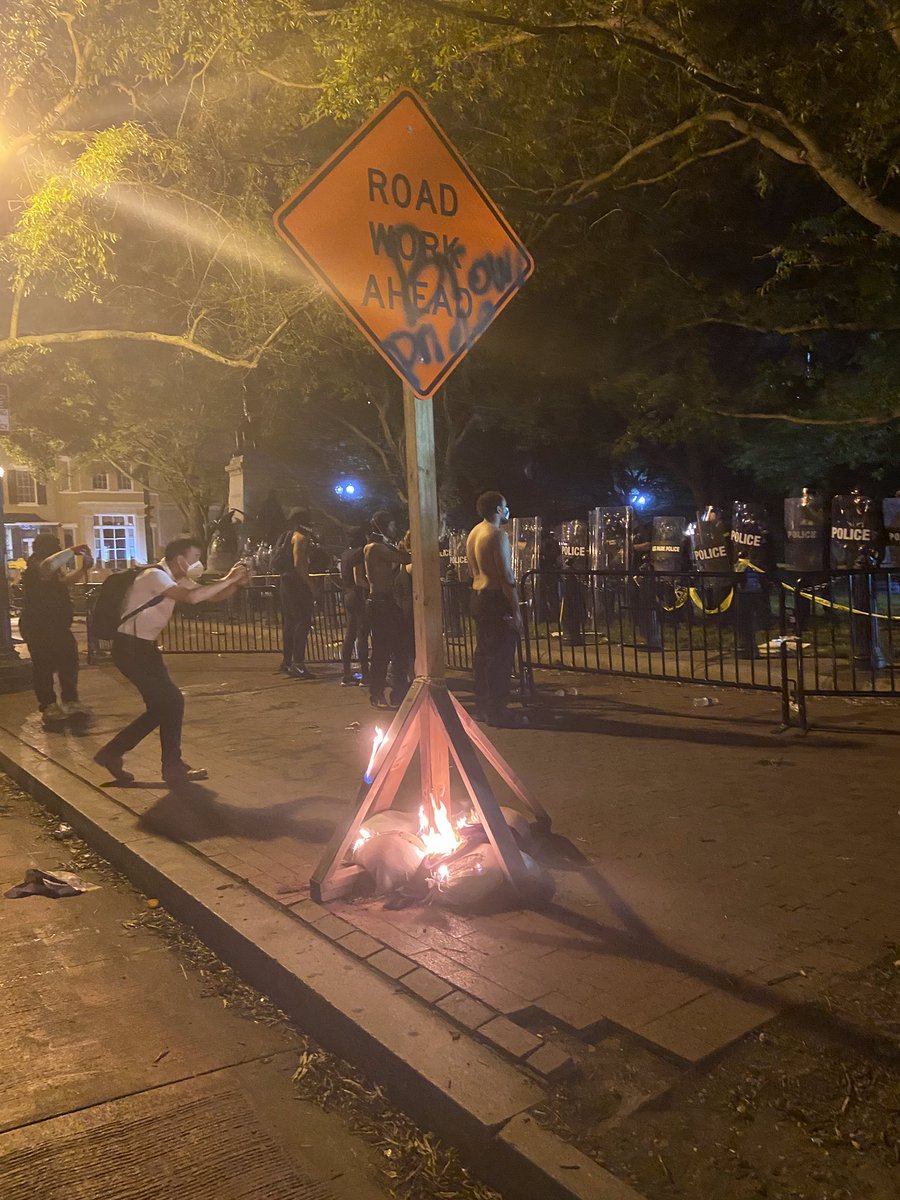 Here a person can be seen using, what appears to be a blow torch, to ignite items on I Street NW.