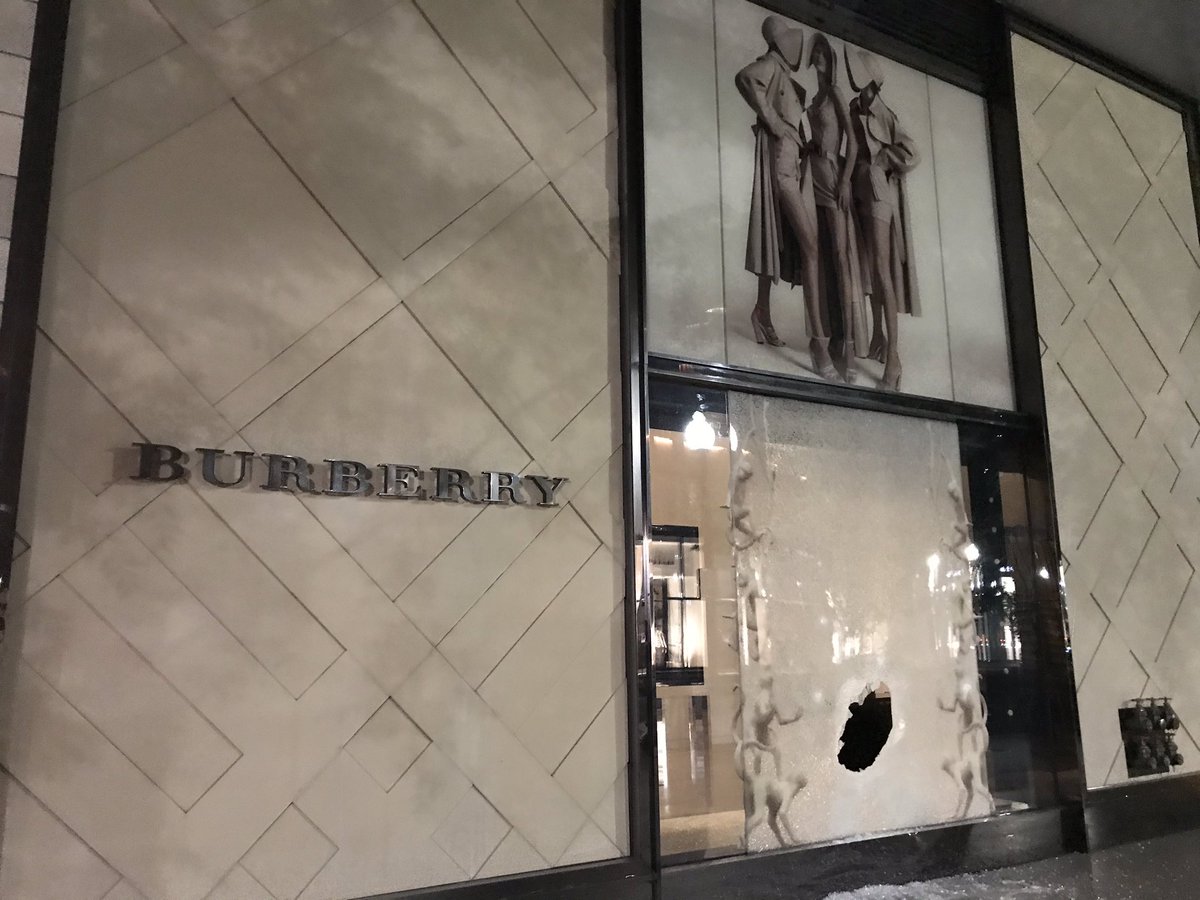 It does *not look like the rioters entered the store to loot.