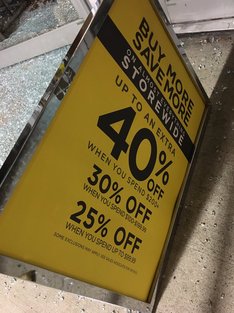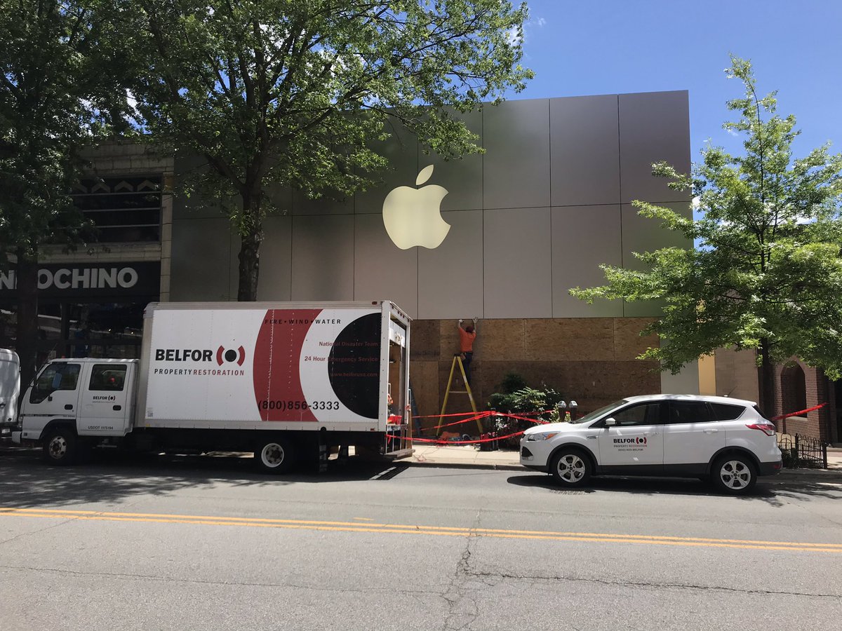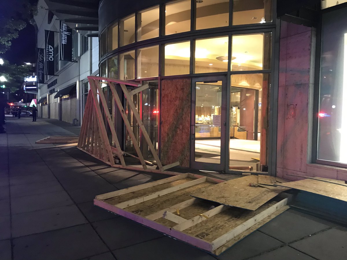 Looters also ripped a wooden board off of a window at the Apple Store.