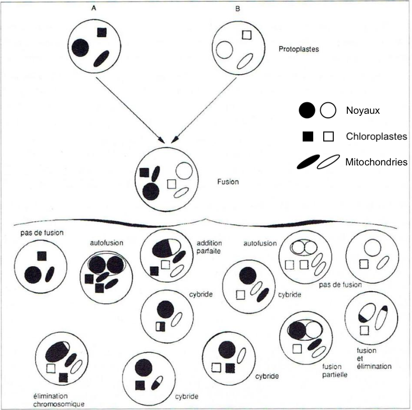 les hybrides résultats de ces fusions somatiques étant utilisés comme point de départ d'une nouvelle sélection classique !