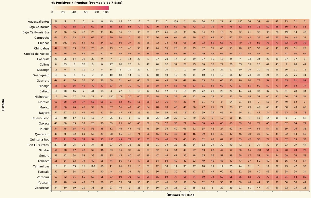 4. Proporción de resultados positivos a pruebas por estado