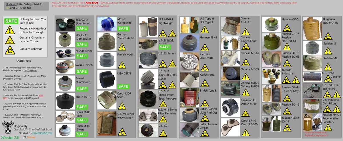 - Soviet GOST. this can be made to fit NATO filters with some tape but it’s a pain. avoid