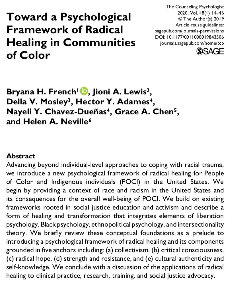 Lilian Comas-Díaz latest article in the #AfroLatinidad special issue in the Journal of Latinx Psychology is a must read for those interested in liberation psychology and #RadicalHealing. Good discussion of AfroLatinx spirituality as resistance & healing