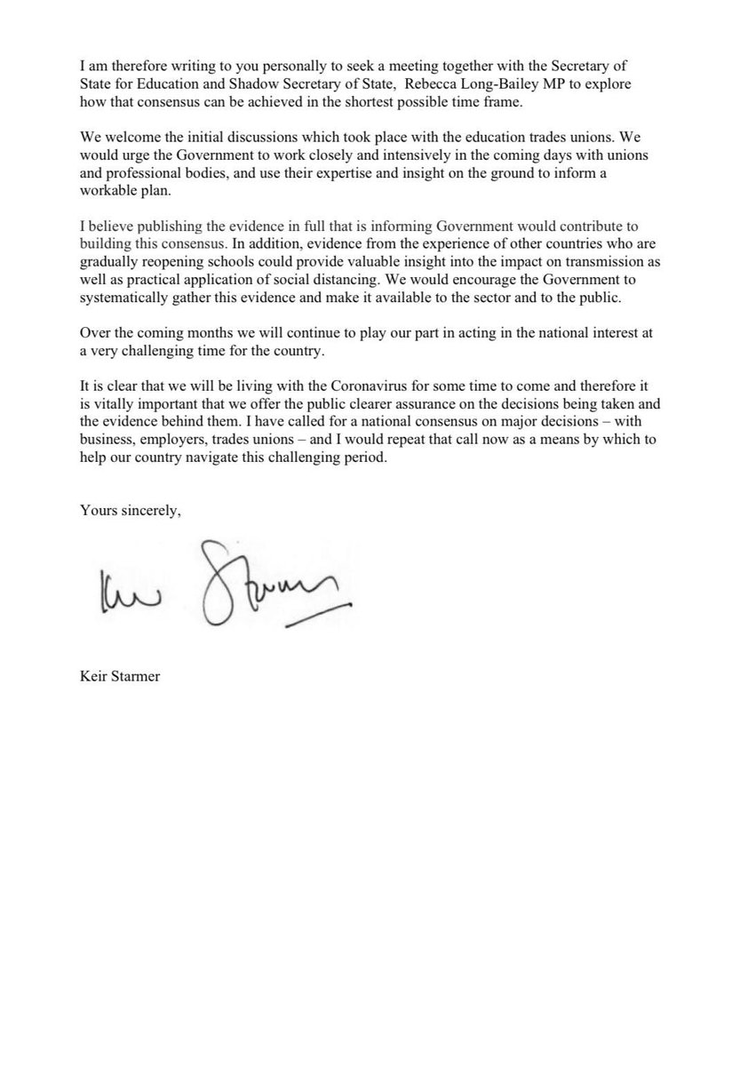 NEW: this is the letter @Keir_Starmer sent to the PM about reopening schools which he mentioned in #pmqs. Asks for a meeting with PM and Gavin Williamson about the issue.