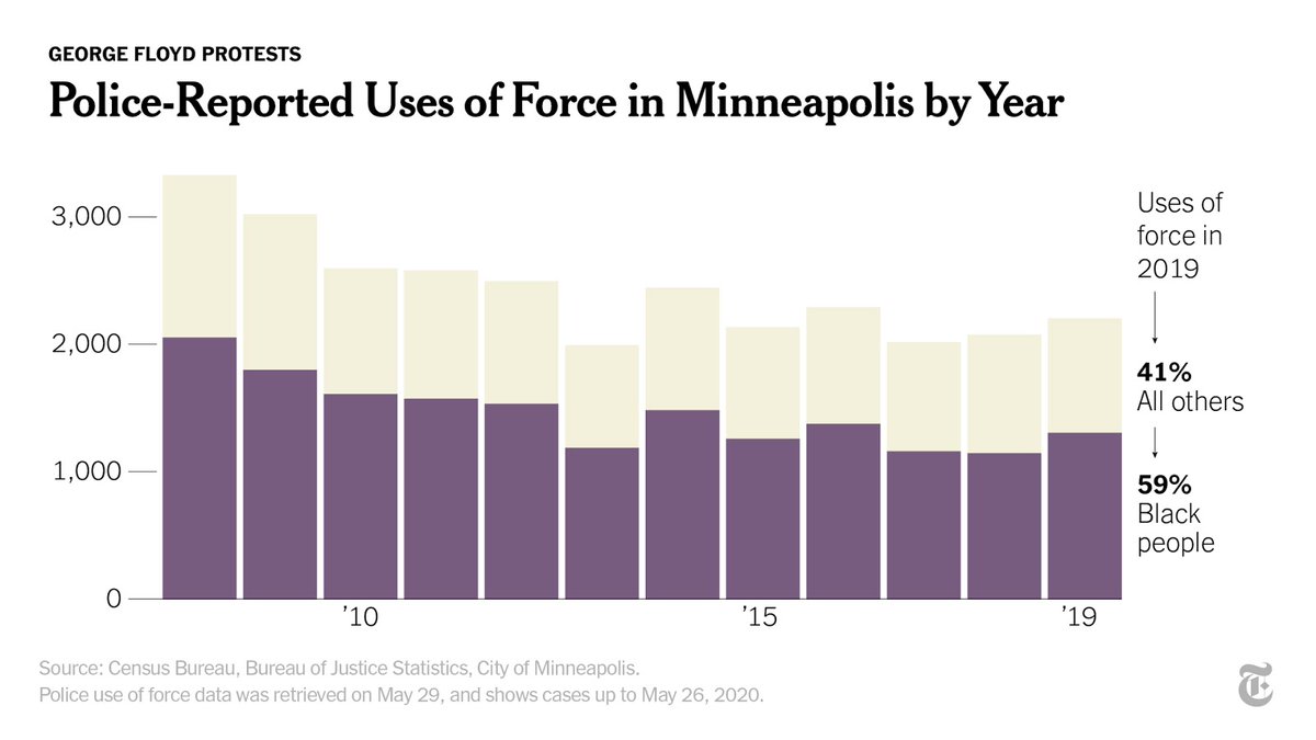 Since 2015, Minneapolis police have documented using force about 11,500 times. For at least 6,650 of those acts — nearly 60% — the subject was black. nyti.ms/3dtccUs
