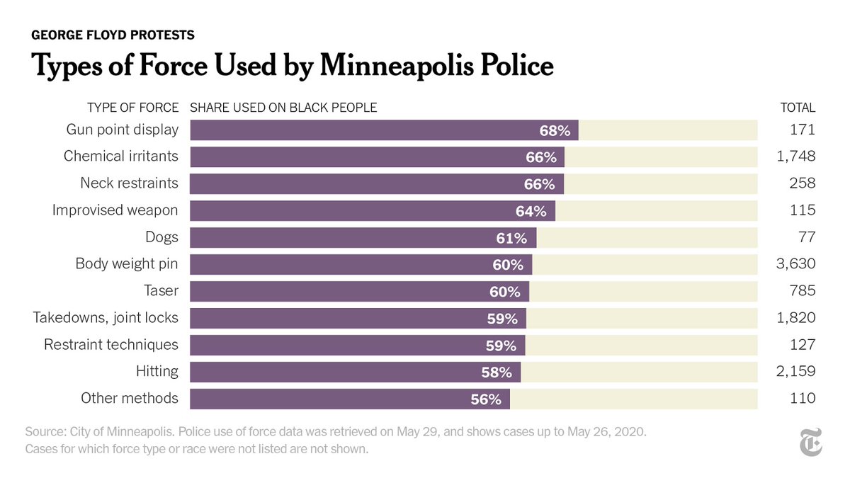 Since 2015, we found that when Minneapolis police use these kinds of force, about two-thirds of the time, the person subject to that force is black. nyti.ms/3dtccUs