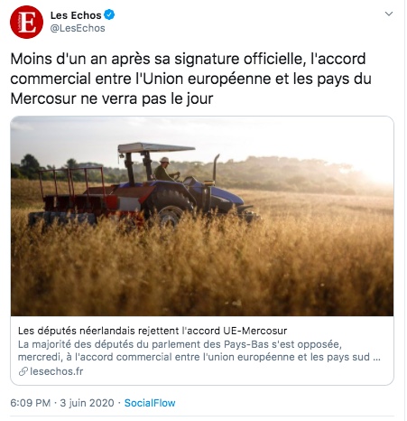 Cette résolution des députés des Pays-Bas s'ajoute à celle du parlement autrichien qui, en septembre dernier, a voté une résolution similaire demandant au gouvernement de retirer son soutien à l'Accord UE-Mercosur.