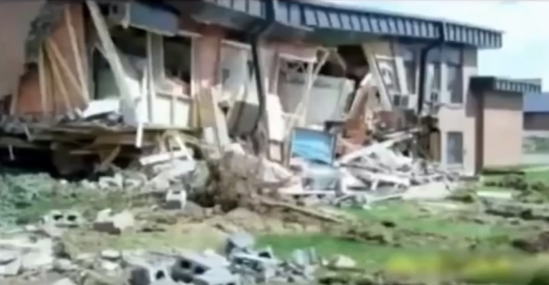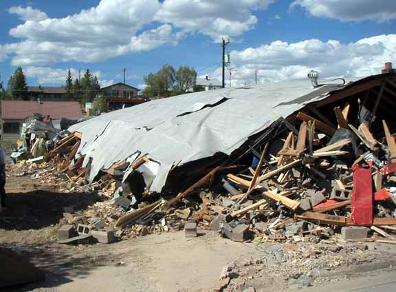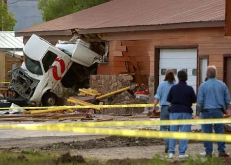 Cuando arremete contra la ferretería, queda atrapado y ya no puede salir.