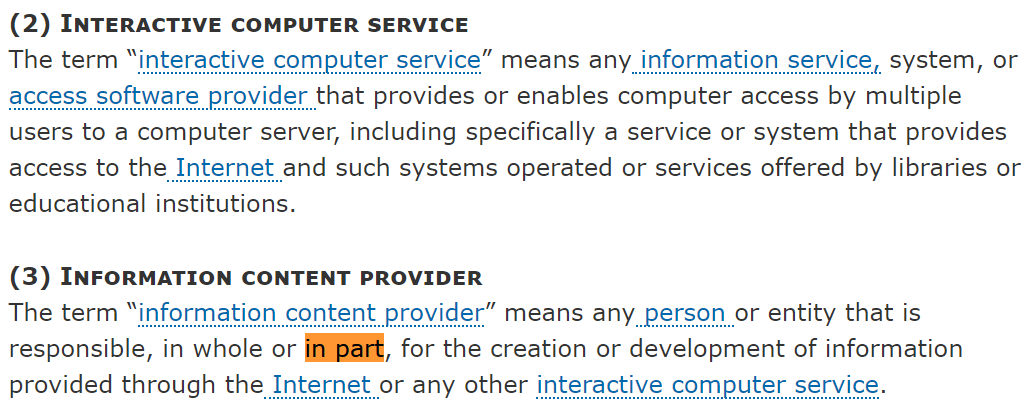 (c)(1) says the publisher/platform distinction he and other conservatives keep harping on just isn’t a thing