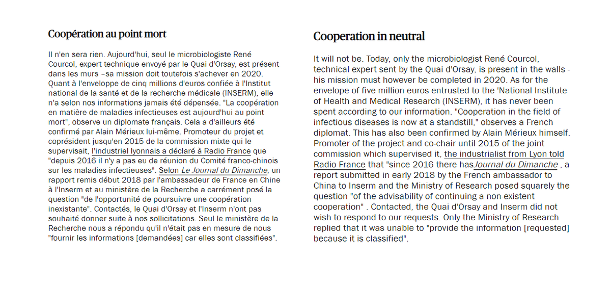 "Object of all suspicions & fantasies, P4 lab in Wuhan, which we were able to visit in February 2019, is result of a long & chaotic cooperation between France & China."