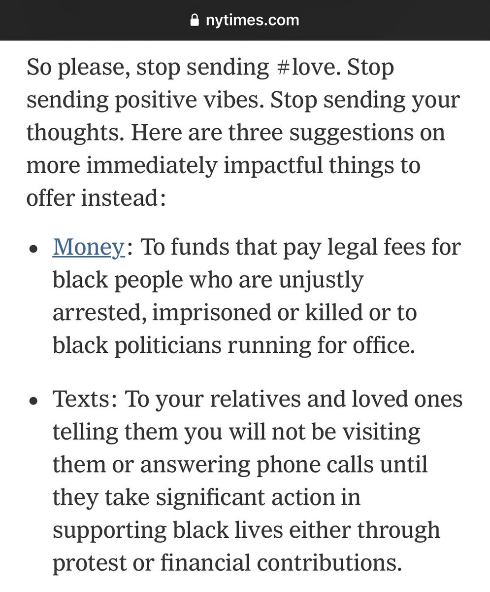 • Text your relatives & loved ones that you won’t visit or talk to them until they protest for Black lives or give $ to social justice groups