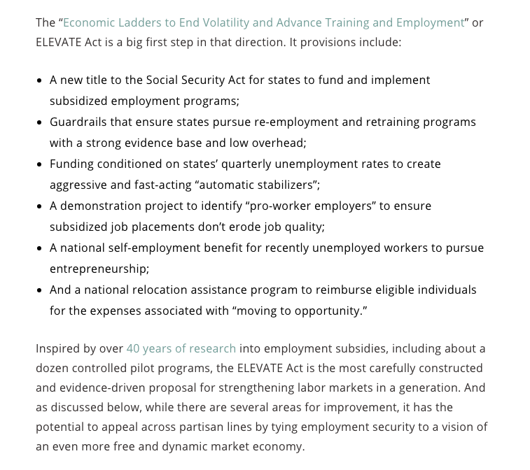 It would create a flexible funding stream for states to implement subsidized employment programs that automatically expand following a regional or national downturn. niskanencenter.org/the-elevate-ac…