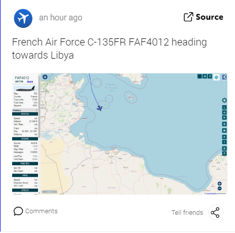 Ein Flugzeug der französischen Luftwaffe fällt mit sonderbaren Flügen Richtung #Libyen auf.