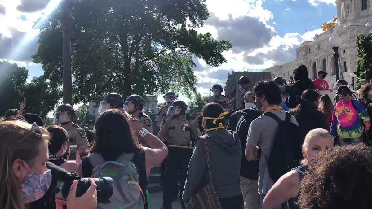 State troopers are moving people away from the Columbus statue. Now we’re waiting for a truck to come “pick the trash off the street” as one organizer put it