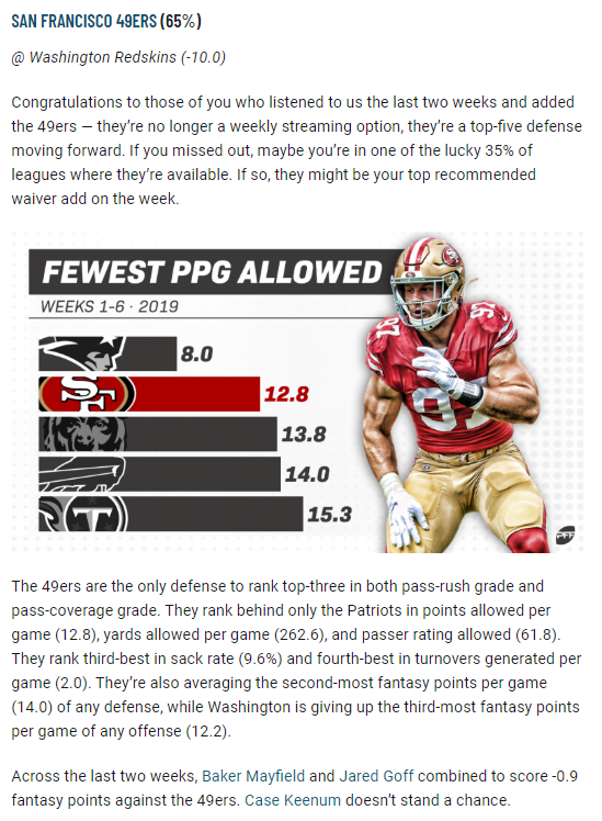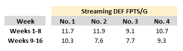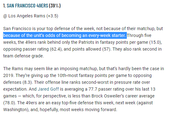 Implication being: maybe it's not worth over-spending in FAAB for your fav streaming DEF