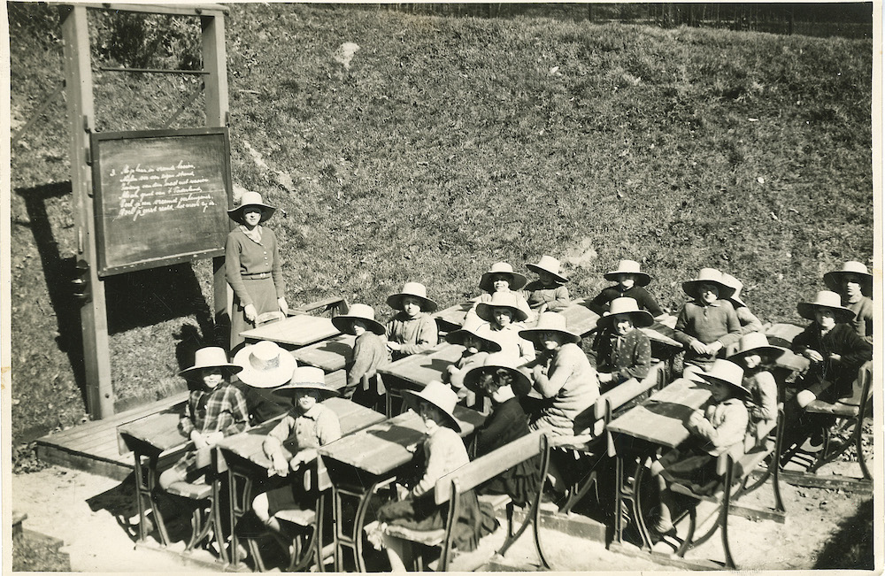 Encontré este video promocionando las escuelas al aire libre y el mundo bucólico que las rodeaba.