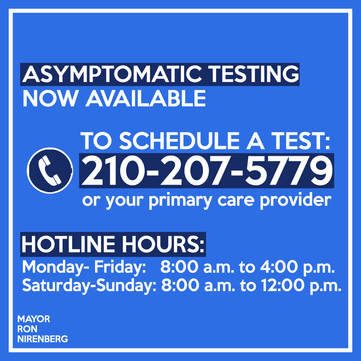COVID-19 Hotline: 210.207.5779